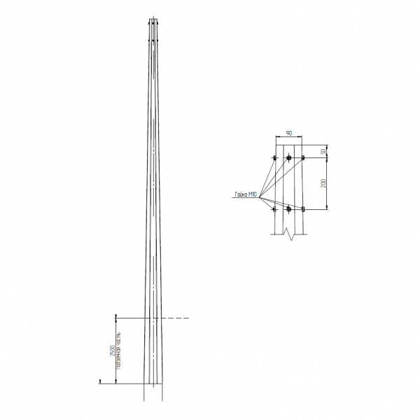 | Обозначение | Высота опоры, м | Толщина листа, мм | Верхний ⌀ d, мм | Нижний ⌀ D, мм | Вес оцинкованной опоры, кг | Отпускная цена за шт, руб. с НДС |