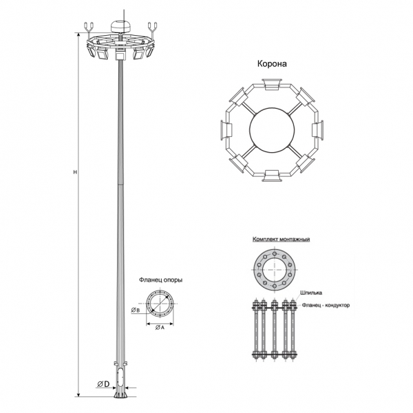 Прожекторная мачта освещения металлическая оцинкованная ПМО-25, изготовленная по ГОСТ.